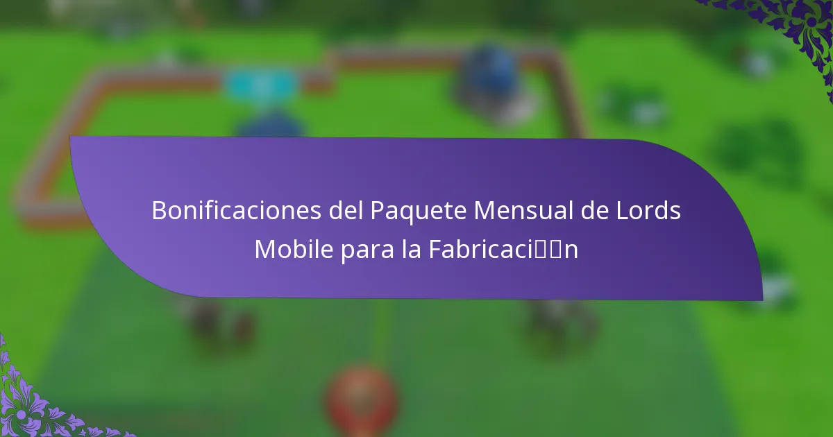Los paquetes mensuales de Lords Mobile ofrecen varios bonos de elaboración que mejoran la eficiencia y la asignación de recursos para los jugadores. Estos bonos suelen incluir recursos adicionales y artículos específicos de elaboración que pueden impactar significativamente en la jugabilidad y la estrategia.